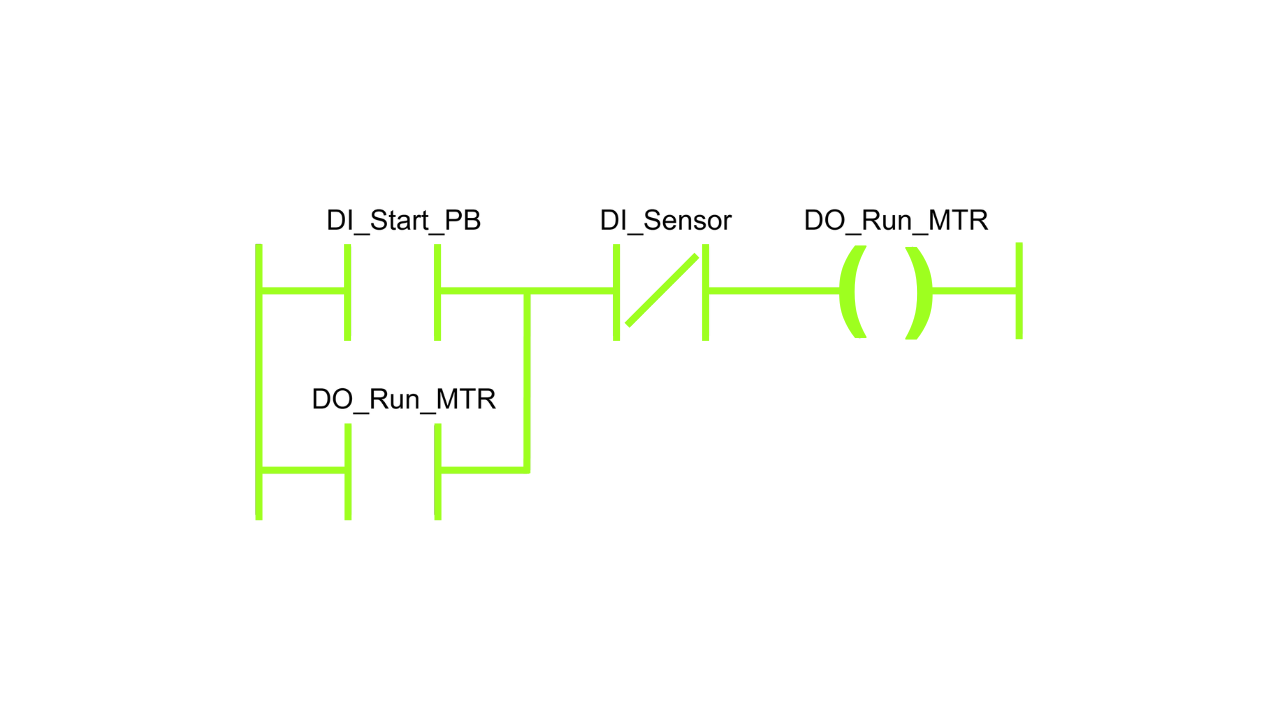 In the example above, the output to run the conveyor motor is the output of the seal-in circuit.