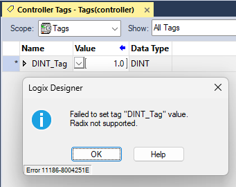 Historically, PLC programmers used tags with smaller data types to save memory in the controller. In Logix 5000 controllers, the smallest amount of space allocated for a tag is four bytes so SINT, INT, and DINT tags actually take up the same amount of space in the controller.