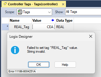 A REAL tag can store numbers with decimal places between -3.40282347E38 and 3.40282347E38. REAL tags cannot store letters.