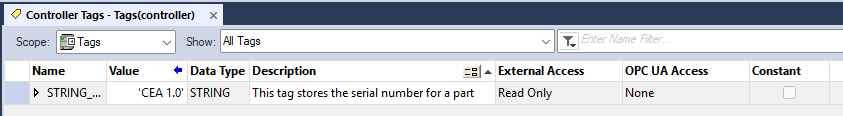 The Constant attribute defines whether a tag’s value can be changed programmatically or if it has a constant value that can only be changed in Studio 5000 Logix Designer.