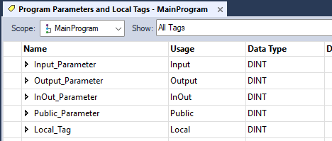 A parameter is a special type of program-scoped tag that can be used to pass data between programs. Historically, this passing of data was done by aliasing local togs to controller tags.